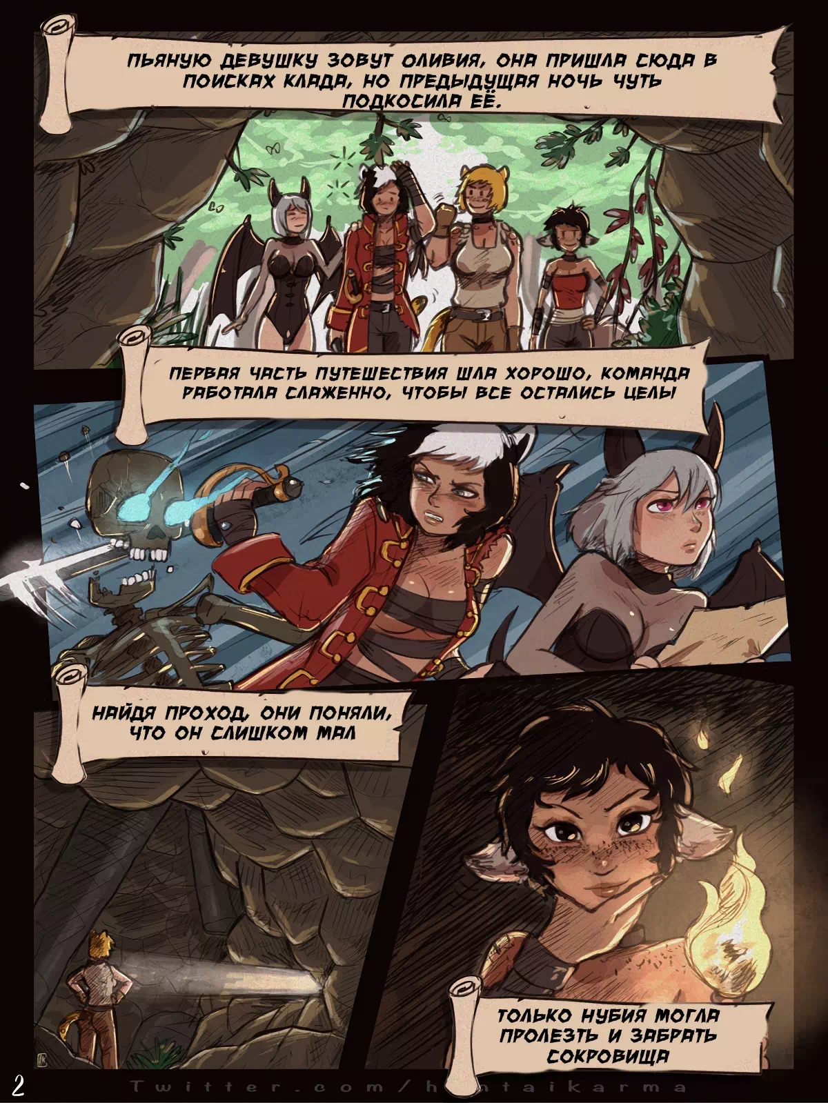 Группа отчаянных искательниц сокровищ отправилась в очередное приключения, поиск клада начался стандартно – темная глубокая пещера, загадочные тени на стенах и прочие атрибуту, ну а закончилось всё жаркими потрахушками и полным фиаско.